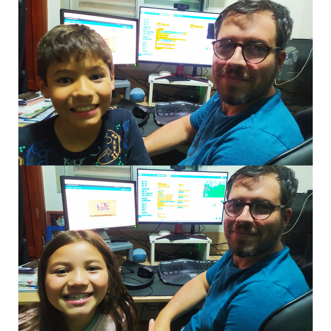 Foi então que um dia, pensei em ensinar parte do meu trabalho para os meus filhos, mas de forma divertida e lúdica. Comecei a ensinar programação para eles. Eles começaram a se interessar e quiseram aprender mais. Fui entendendo que a forma que eu ensinava era o que eles precisavam e vi que com uma única atividade eles estavam desenvolvendo as super habilidades, de forma natural.